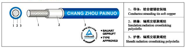印字 MARKING TUV 2 PfG 1169 PV1-F 1×( )mm2 AC 600/1000V CHANG ZHOU PAINUO ELECTRON CO.,LTD. |